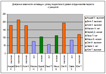 Цель данной работы – проанализировав результаты исследований психологического теста выявить связь между наличием сотрудничества и сотворчества педагога и учеников со степенью их мотивации к успеху.