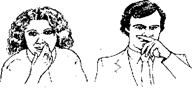 Когда подросток говорит неправду, рука прикрывает рот почти так же, как и у пятилетнего ребенка, но только пальцы слегка обводят линию губ (рис.5). Это жест прикрывания рукой рта становится более утонченным во взрослом возрасте. Когда взрослый человек лжет, его мозг посылает ему импульс прикрыть рот, в попытке задержать слова обмана, как это делается пятилетним ребенком или подростком, но в последний момент рука уклоняется ото рта и рождается другой жест-прикосновение к носу (рис.6). Такой жест есть ни что иное, как усовершенствованный взрослый вариант того же жеста прикрывания рта рукой, который присутствовал в детстве.