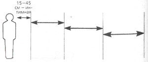 Когда мы адресуемся к большой группе людей, то удобнее всего стоять именно на этом расстоянии от аудитории.