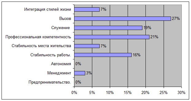 3.1.2 Результаты исследования карьерных ориентации с помощью методики «Якоря карьеры».
