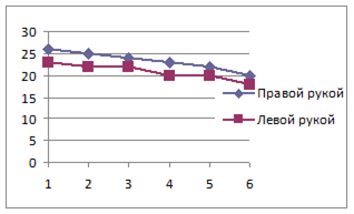 В результате проведенного нами исследования по методике теппинг-теста взаимосвязи между силой нервной системы и особенностями развития характера человека не выявлено.