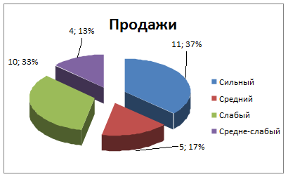 Таким образом, по результатам проведенного исследования испытуемых можно разделить на четыре группы по силе нервной системы: сильный тип нервной системы, средний, слабый и средне-слабый. Полученные результаты отобразим на рис. 3.32.