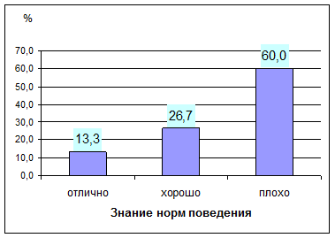 Из рисунка 5 видно, что меньше половины детей знают нравственные нормы поведения.