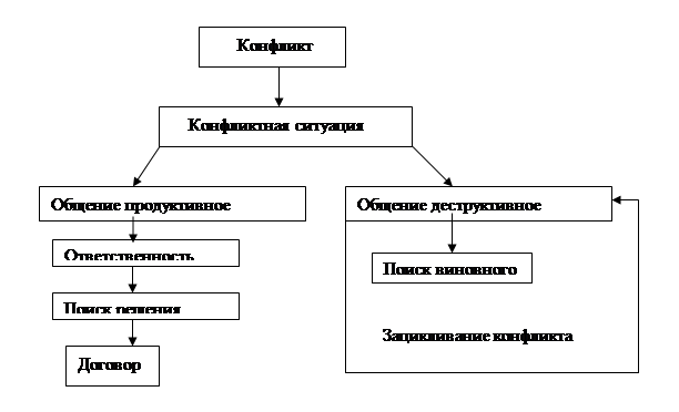Непродуктивное (деструктивное, конфликтное) общение- это общение по жесткому сценарию, приводящее к зацикливанию. Конфликт при этом не решается.