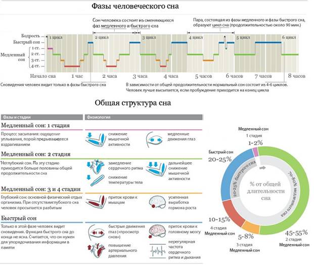 По мере взросления периоды глубокого сна обычно удлиняются, а поверхностного - укорачиваются, продолжая чередоваться в течение ночи до 4-6 раз. Продолжительность циклов, из которых состоит нормальный сон, увеличивается с возрастом от 50-55 минут у младенцев до 1,5 часов у взрослых.