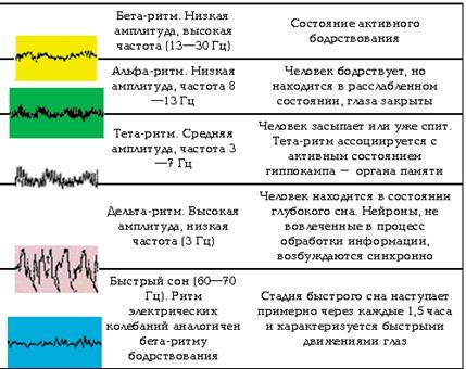 При утомлении нарушается синхронизации в работе мозговых структур. В сновидениях, отражается про-цесс упорядочения биоритми-ческих отношений между мозговыми структурами биоритмическому фону, поэтому, возможно, нейроны, активно функционировавшие в течение дня вынуждены активно работать в БДГ. | |