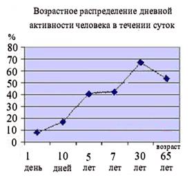 Рис.4.3.1. Возрастное распределение дневной активности (ист.http://ikhy.chat.ru/in-15.htm )
