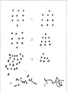 Первое задание выполнено очень примитивно и заслуживает оценки в 5 баллов. За второе задание можно поставить 2 балла т.к. образец скопирован разборчиво но с небольшими погрешностями. И третье задание почти совершенное подражание образцу. Единственной погрешностью это не которое уменьшение пространства между точками, но это допустимо. Итого испытуемым набрано 8 баллов, что соответствует среднему результату.