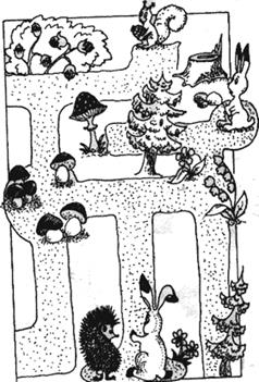 Уровень развития пространственного мышления выявляется разными способами. Эффективна и удобна методика Л.А. Венгера «Лабиринт». Ребенку нужно найти путь к определенному домику. Среди других неверных путей и тупи ков лабиринта. В этом ему помогают образно заданные указания – мимо таких объектов (деревьев, кустов, цветов, грибов) он пройдет. Ребенок должен ориентироваться в самом лабиринте и в схеме, отображающей последовательность пути, т.е. решение задачи.