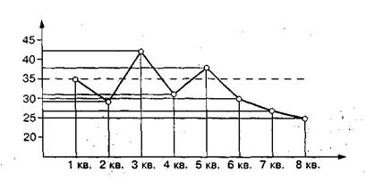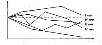 На рисунке 6 представлен общий вид графиков каждого типа (при интерпретации индивидуальных графиков следует обращать внимание на их положение относительно горизонтальной линии, начинающейся на том месте оси ординат, которое обозначает количество точек в первом квадрате).