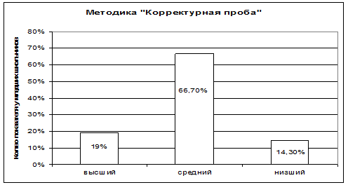 | «Корректурная проба» | 4 | 19 | 14 | 66,7 | 3 | 14,3 |