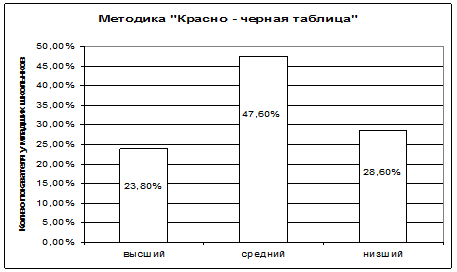 | «Красно-черная таблица» | 5 | 23,8 | 10 | 47,6 | 6 | 28,6 |