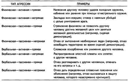 Ввиду того, что проявления агрессии у людей бесконечны и многообразны, весьма полезным оказывается ограничить изучение подобного поведения концептуальными рамками, предложенными Бассом. По его мнению, агрессивные действия можно описать на основании трех шкал: физическая - вербальная, активная - пассивная и прямая - непрямая. Их комбинация дает восемь возможных категорий, под которые подпадает большинство агрессивных действий. Эти восемь категорий агрессивного поведения и примеры к каждой из них приведены в Приложении.