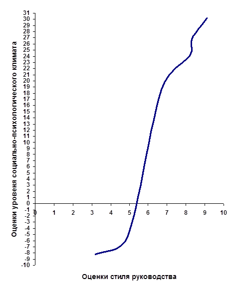 3. между стилем руководства и уровнем социально-психологического климата существует высокая положительная корреляция равная 0,9428.