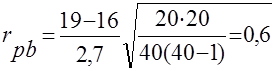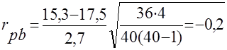 Результаты вычисления точечно бисериального коэффициента корреляции (неустойчивый тип)