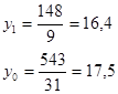 - среднее по у, имеющих единицы по х;