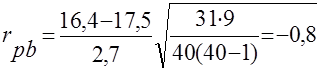 Результаты вычисления точечно бисериального коэффициента корреляции (эпилептоидно-неустойчивый тип)