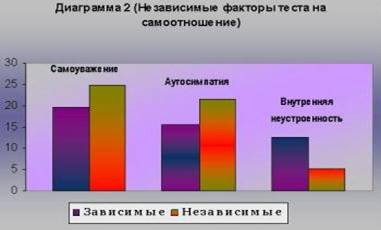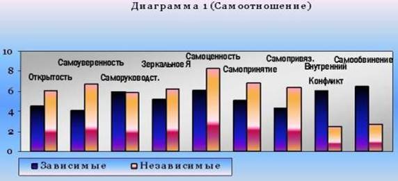 Проведя наше исследование, мы увидели некоторые особенности в структуре самосознания группы наркозависимых личностей. И хотя мы не можем делать глобальных выводов, для данной группы исследуемых, мы можем утверждать о наличии различий в самосознании зависимых и независимых личностей.
