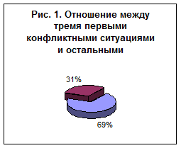 На рисунке 1 изображены процентные отношения между тремя первыми, по частоте возникновения, конфликтными ситуациями и остальными.