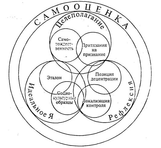 Психологическая модель самооценки наглядно демонстрирует, что ее адекватное функционирование возможно при условии достаточной сформированности основных структурных компонентов, таких как целеполагание, идеальное «Я» и рефлексия.