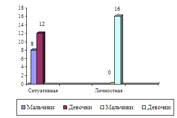 Анализируя полученные результаты мы приходим к выводу, что у девочек личностная и ситуативная тревожность выше, чем у мальчиков, но на формирующем этапе эксперимента количество тревожных детей стало меньше.