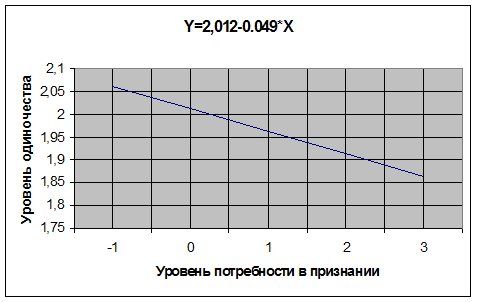 2. Чем выше уровень потребности в признании, в общей структуре потребностей личности, тем слабее чувство одиночества. С повышением уровня потребности в признании и степени ее неудовлетворенности ощущение одиночества падает.