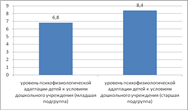 В результате исследования было выявлено, что уровень готовности к поступлению в детский сад у детей различен. Более высокий уровень готовности у детей старшей подгруппы, они готовы к поступлению в детский сад. У младшей группы условная готовность к детскому саду. Возможно, это объясняется возрастными особенностями детей младшей подгруппы, их потребностью быть все время с матерью. Результаты диагностики показали, что уровень психофизиологической адаптации к условиям дошкольного учреждения более высок у детей старшей подгруппы.
