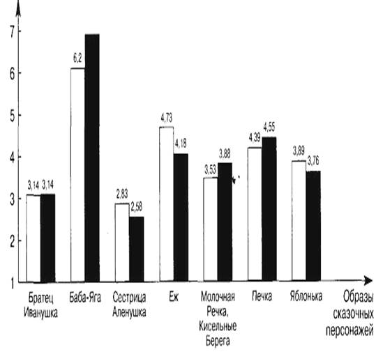 Также не достигают уровня статистической достоверности сдвиги в сторону улучшения эмоционального восприятия к образам Братца Иванушки в роли искомого персонажа и помощника - Ежа.
