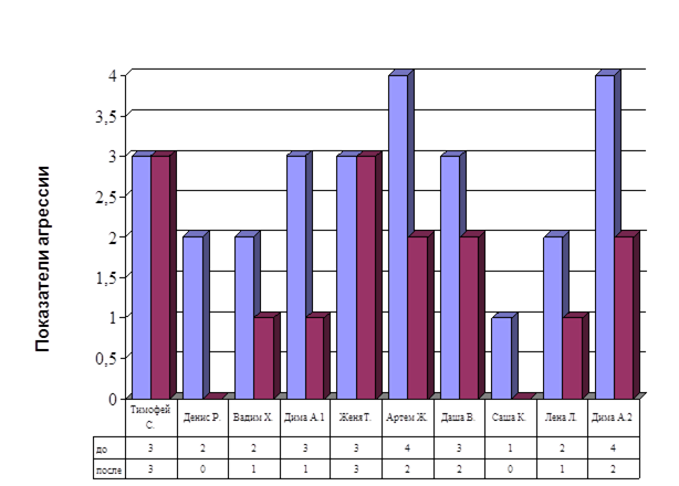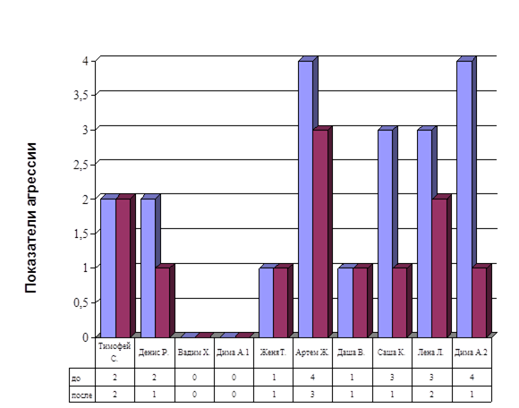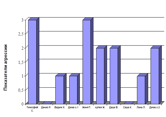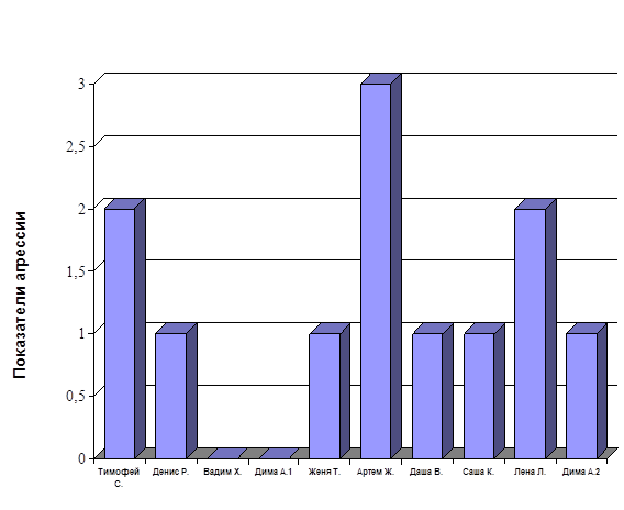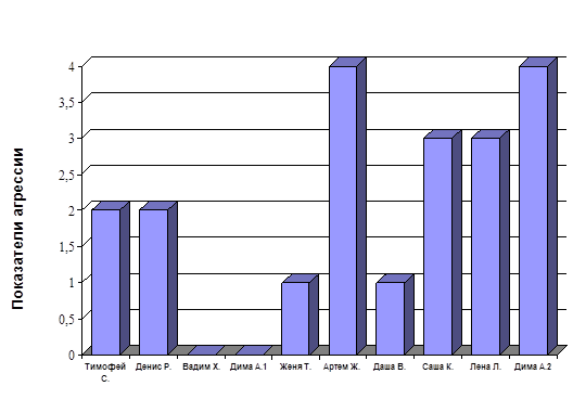 Также при анализе данных, полученных после проведения диагностической работы, отметилась высокая степень проявления агрессии.