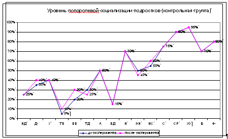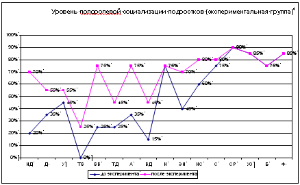 Таблица 2.3. Уровень полоролевой социализации подростков после проведения эксперимента