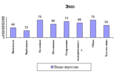 Из данного графика видно, что у эмо преобладает косвенная агрессия и обида. Скорей всего это связано с тем, что эмо немного трусливые и боятся вступить в конфликт с другими людьми, поэтому им нет смысла проявлять физическую или вербальную агрессию на кого-либо открыто. Однако, они проявляют косвенную агрессию на тех, кто не сможет причинить им вреда. Обида скорей всего преобладает из-за того, что в большинстве случаев эмо, как субкультуру, не любят.