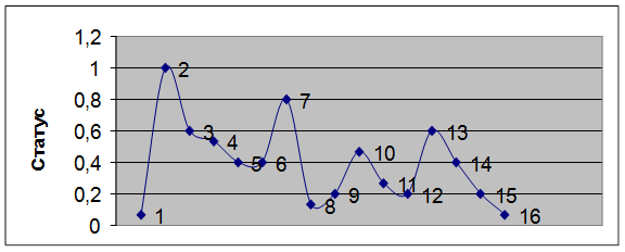 Анализ статусной структуры, полученной по результатам исследования, показывает, что выборы между людьми в группах распределяется неравномерно, следовательно, мы можем констатировать факт дифференциации изучаемых групп на группы людей занимающих разное место в системе личных взаимодействий.