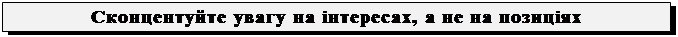 У своїй книзі Роджер Фішер і Уїльям Юрі зазначають, що багато які конфлікти відбуваються тому, що люди займають певні позиції, а потім фокусують всі зусилля на захисті цих позицій, замість того, щоб визначити приховані потреби і інтереси, які змусили їх ці позиції зайняти. Таким чином, їх помилкова орієнтація стає перешкодою для пошуку рішення, яка б враховувала приховані інтереси сторін, що беруть участь в конфлікті. Як сказано в цій книзі “Застосування інтересів, а не позицій ефективніше по двох міркуваннях. По-перше, для будь-якого інтересу звичайно може існувати декілька можливих позицій, які йому задовольняють, Частіше за все люди займають найбільш очевидну позицію. Але якщо ви за протилежними позиціями шукаєте мотивуючі інтереси, ви можете виявити деяку альтернативу, яка задовольнить інтереси обох сторін."