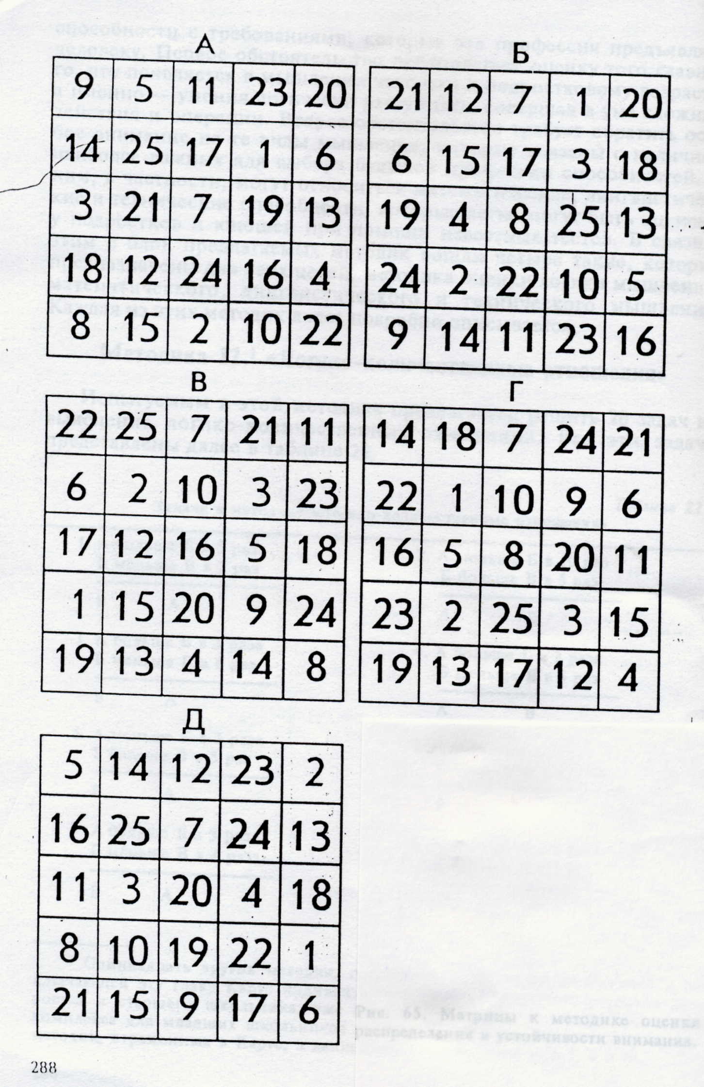 Стимульным материалом к данной методике служат 5 черно-белых цифровых 25-значных таблиц (представленных в Приложении 2). В ячейках этих таблиц в хаотичном порядке размещены цифры от 1 до 25.