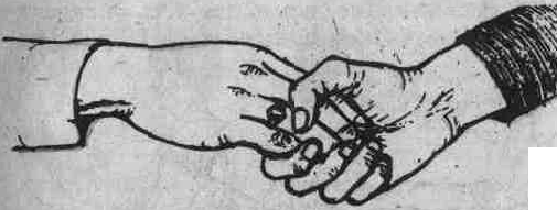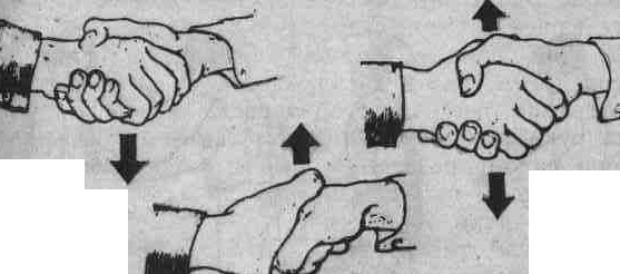 Крепкое рукопожатие вплоть до хруста пальцев (рис.14) является отличительной чертой агрессивного, жесткого человека.