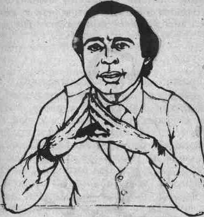 Этот жест имеет два варианта: руки шпилем вверх (рис. 20) и руки шпилем вниз.