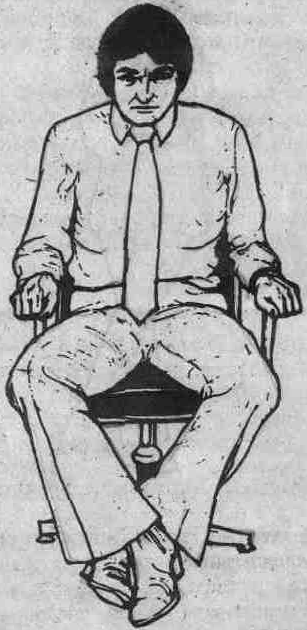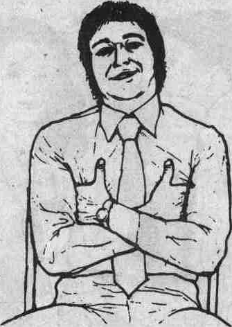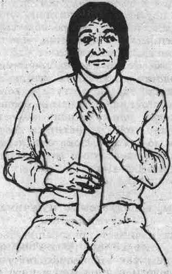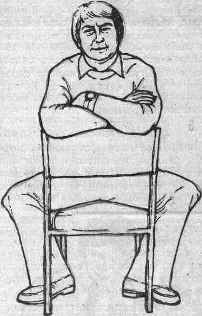 Существует зависимость между положением рук и силой негативного чувства. С человеком будет труднее договориться в случае, если его руки подняты так, как показано на рисунке 18, чем на 17.