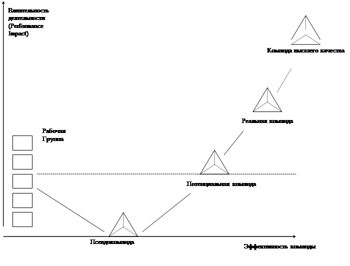 «… взаимодействие участников является частью их коллективной совместной деятельности и становится возможным в результате их межличностного общения. Таким образом, спортивную деятельность схематически можно представить как совокупность индивидуальных, групповых и командных предметно ориентированных действий и межличностного общения.