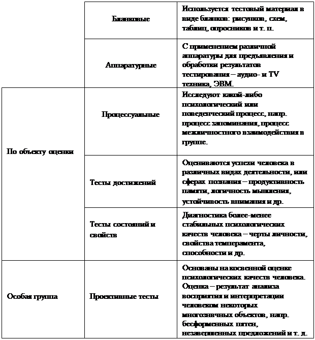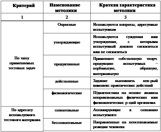 Более развернутую классификацию психодиагностических методик можно представить, выделив другие критерии (см. табл. 2)