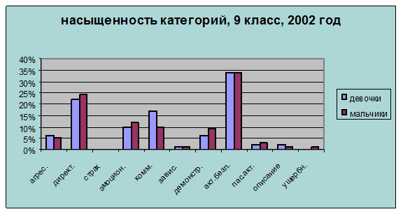 Таблица 5.Насыщенность категорий, 9 класс, 2002 г