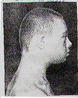 | Рис.2.Параллельное расположение плоскости лица и затылка, узкий лоб, низкая граница оволосения (больной Л., 17 лет). |