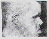 Весьма характерны аномалии строения головы и лица. Типична круглая, небольших размеров голова со скошенным и уплощенным затылком (рис.№1).