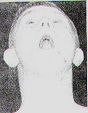 Костный скелет лица обнаруживает ряд других типичных для этого заболевания аномалий. Так, скуловые дуги всегда выступают. Верхняя челюсть недоразвита и представляется короткой и узкой. Нижняя челюсть выдается вперед (рис.№2). Неправильное развитие и окостенение небных отростков верхней челюсти ведет к образованию крутого, высокого неба (рис.№4).