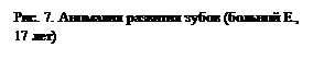 Частым симптомом при болезни Дауна являются аномалии зубов. Форма зубов неправильная. Они низкие и тупые, или узкие и острые. Между зубами имеются промежутки; часто отсутствуют боковые резцы (рис.№7).