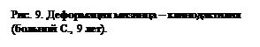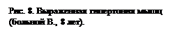 Довольно закономерны изменения конечностей при болезни Дауна. Типичен акроцианоз и мраморность кожных покровов конечностей. Весьма часто сочетание гипотонии мышц конечностей с переразгибанием суставов (рис.8).