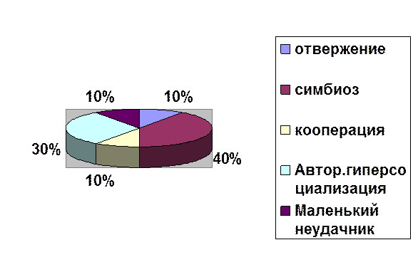 Для проверки гипотезы нами был произведен отбор детей с повешенным уровнем тревожности попавших в группу риска на основании данных школьного психолога. В результате сформировалась группа в кол-ве 22 человек. После проведение бесед с родителями детей группы риска, сформирована группа в кол-ве 10 человек. Для определения родительского отношения к ребенку мы использовали тест-опросник, разработанный А.Я.Варгой и В.В.Столиным, который позволил выявить систему разнообразных чувств по отношению к ребенку, поведенческих стереотипов, практикуемых в общении с ним, особенности восприятия и понимания личности ребенка и его поступков. Результаты вы видите на диаграмме.