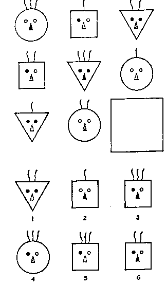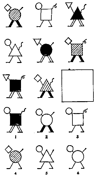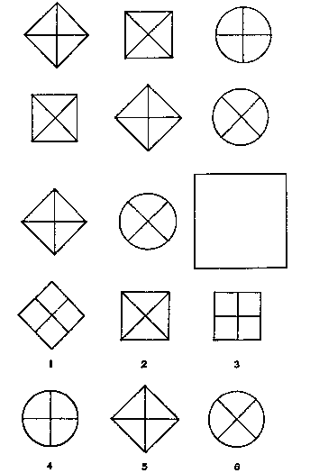 3. Какая из шести пронумерованных фигур подходит для пустого квадрата?