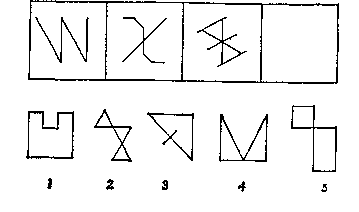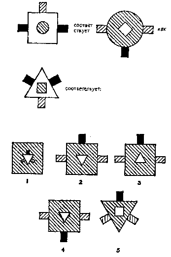 Подчеркните, какая из четырех пронумерованных фигур подходит для пустого места.
