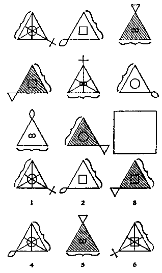 8. Какая из шести пронумерованных фигур подходит для свободного места в квадрате? (Напишите ее номер в квадрате).