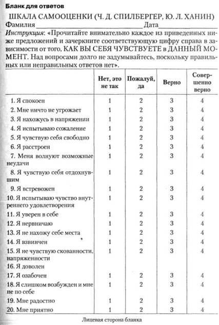 Задание 4. Измерение личностной тревоги........................................ 127